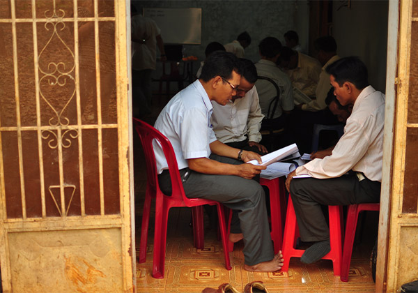 Christen einer vietnamesischen Hauskirchengemeinde treffen sich zum gemeinsamen Bibellesen