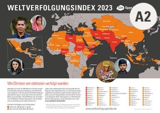 Nutzen Sie diese Karte (A2) zum Weltverfolgungsindex 2025, um in Ihrem Umfeld auf die Länder aufmerksam zu machen, in denen Christen am stärksten verfolgt werden. Sie kann Ihnen außerdem dabei helfen, sich leiten zu lassen, für ein bestimmtes Land oder eine Region zu beten.