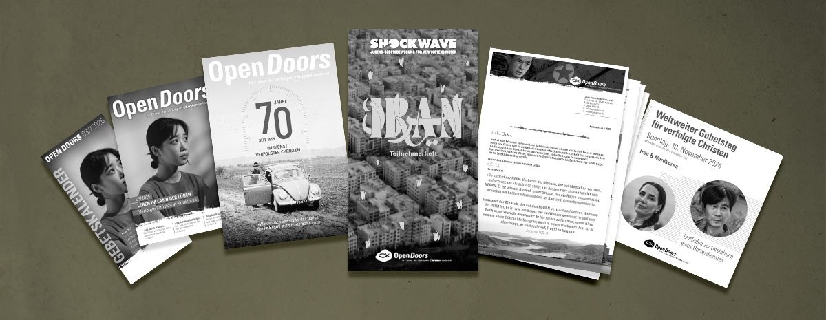 Hier können Sie alle kostenlosen Materialien von Open Doors wie das Monatsmagazin, die Sonderhefte und Materialpakete für Gebetsabende bestellen oder abonnieren.